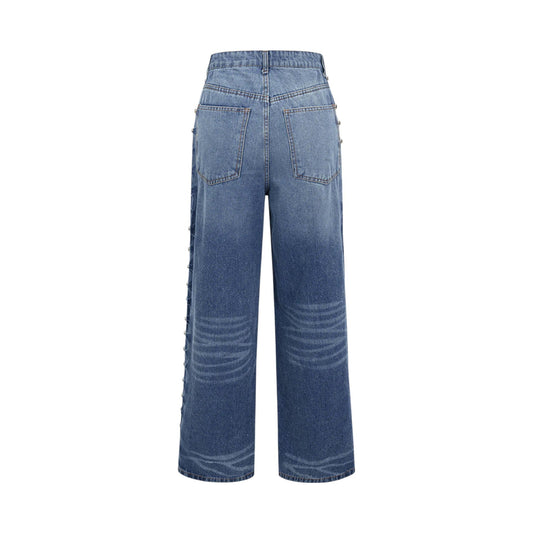 Women’s Blue Denim Jeans with Rivet Detail Loose Fit, Non-Stretch